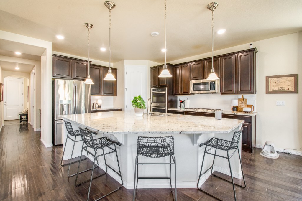 This beautifully decorated home boasts an open floorplan with a high end kitchen, including granite countertops, large island, gas range, a walk-in pantry and hand scraped wood floors. The kitchen opens to a spacious living area with a stone accented gas fireplace, vaulted ceilings and large windows overlooking the covered back deck.
