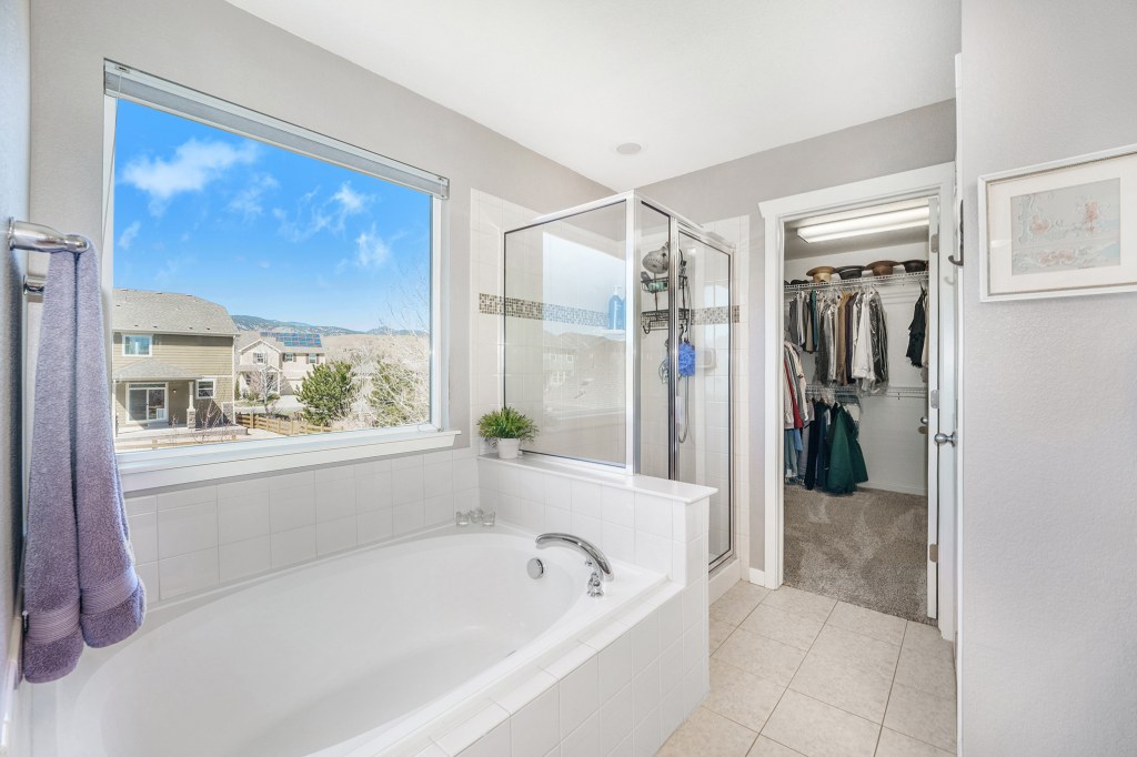 Upstairs, you will find 4 bedrooms and a loft with the primary bedroom boasting mountain views, full 5 piece bath, double sinks and large walk in closet. The loft offers flex space for an extra living area or office. Other features include upstairs laundry, full bathroom with double sinks, lots of natural light and window views of North Table Mountain and the foothills.