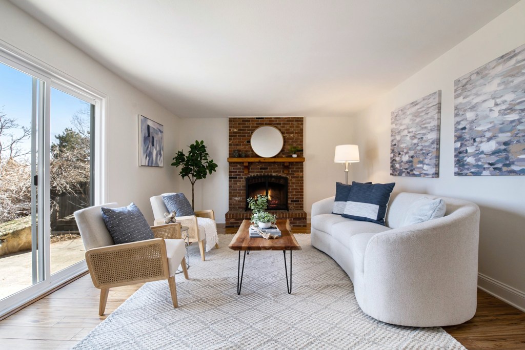 A separate family room with fireplace leads to the spacious backyard with gardening beds, chicken coop and patio area.