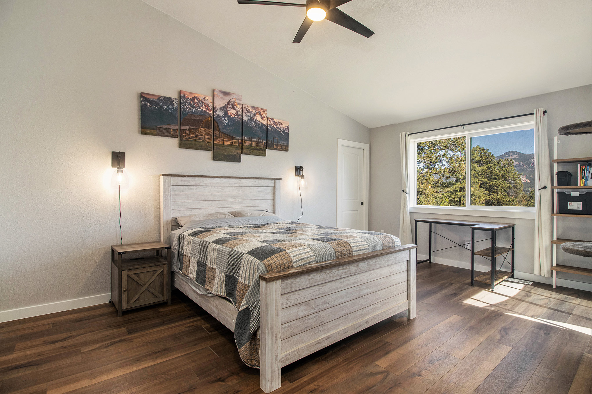 Fully upgraded 3 bed 2 bath mountain home, with stellar views in a quiet and private setting. As you enter the home, notice the open living and kitchen area with plenty of natural light and beautiful LVT flooring. The kitchen boasts butcher block countertops and stainless appliances with dining area and a countertop eating area. The kitchen overlooks the cozy living area with gas stove, numerous windows and access to the back deck overlooking the mountains.