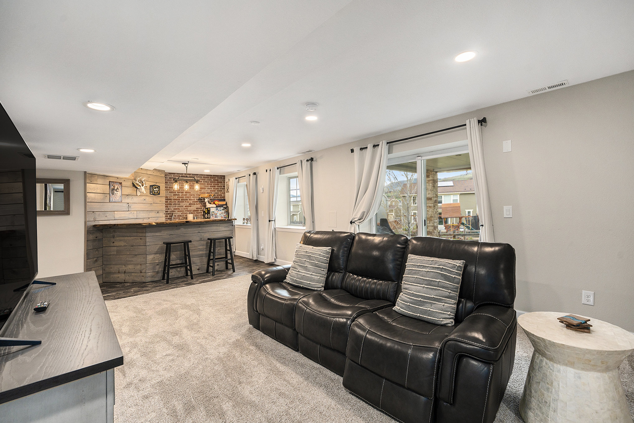 The walk-out basement is partially finished and includes a bedroom, a ¾ bathroom, and a large rec room with direct access to the private backyard — complete with a grassy play area and an oversized swim spa for year-round fun.