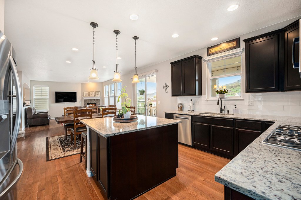 The main floor features rich wood flooring, an open-concept kitchen with updated stainless steel appliances, a granite island, a spacious walk-in pantry, and a functional mudroom.