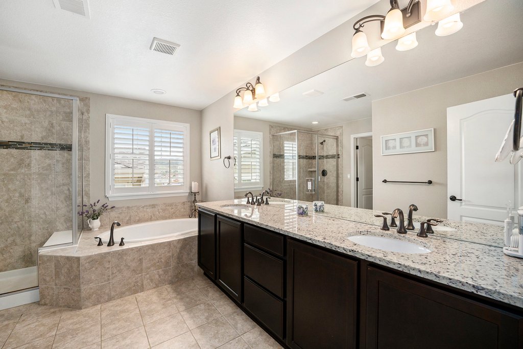 You’ll also find a dedicated office/den with a full bath and a large formal dining room on this level. Upstairs, there are four bedrooms, including a luxurious primary suite with separate tub and shower, double sinks and a walk in closet, two bedrooms connected by a Jack-and-Jill bath, and a fourth bedroom with its own private en-suite. Western-facing rooms offer breathtaking foothill views!