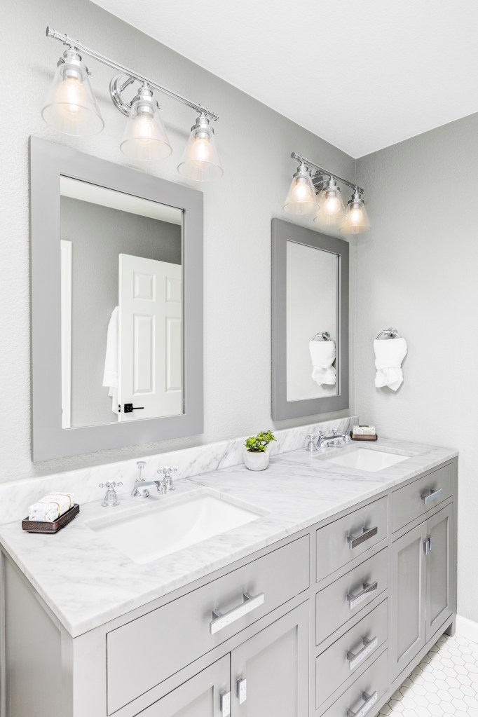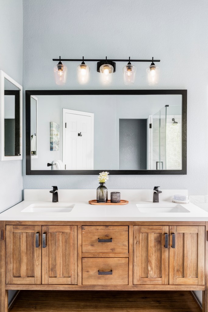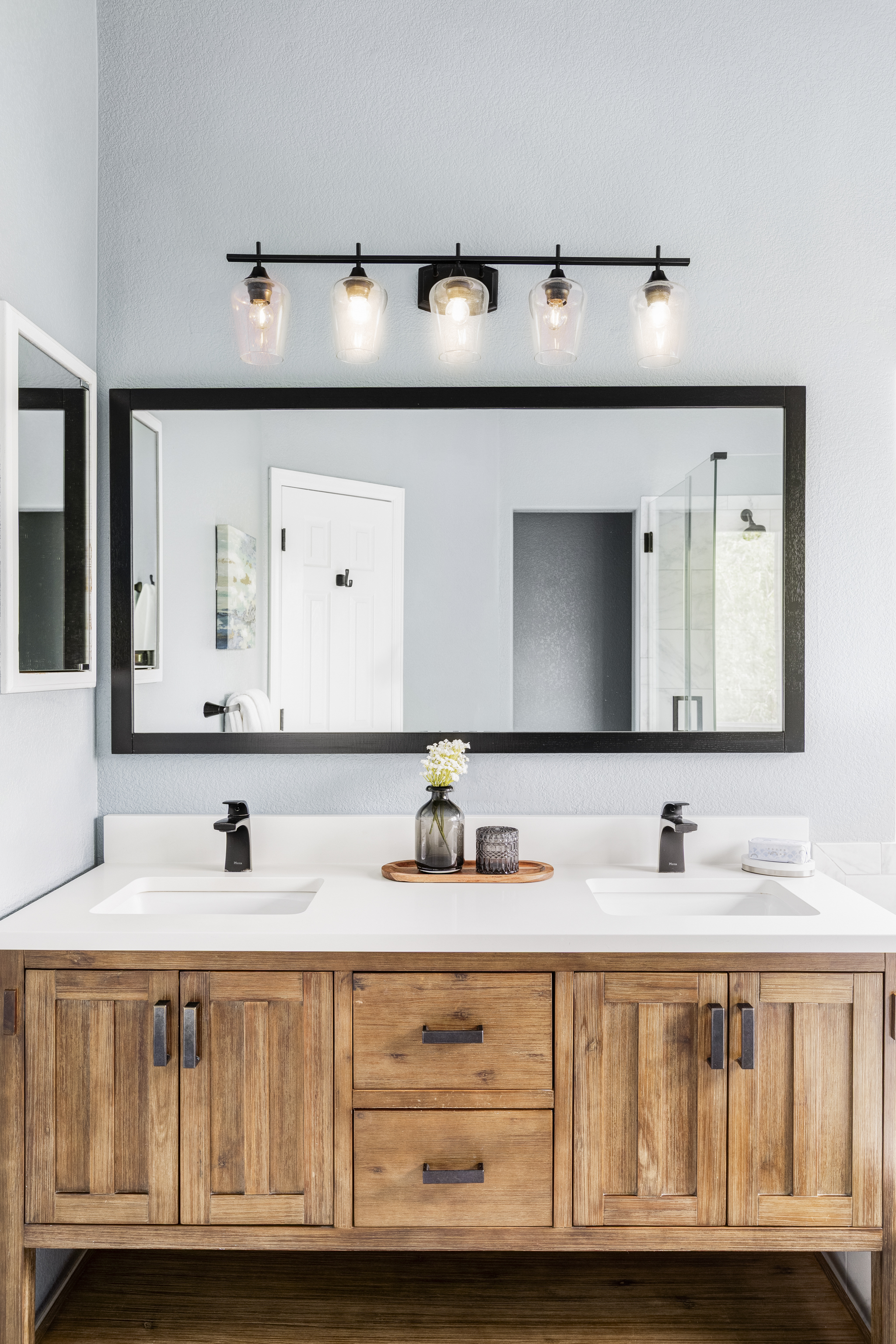 Upstairs, in addition to the primary bedroom, you’ll find three more bedrooms and a stylish full bath with double sinks.