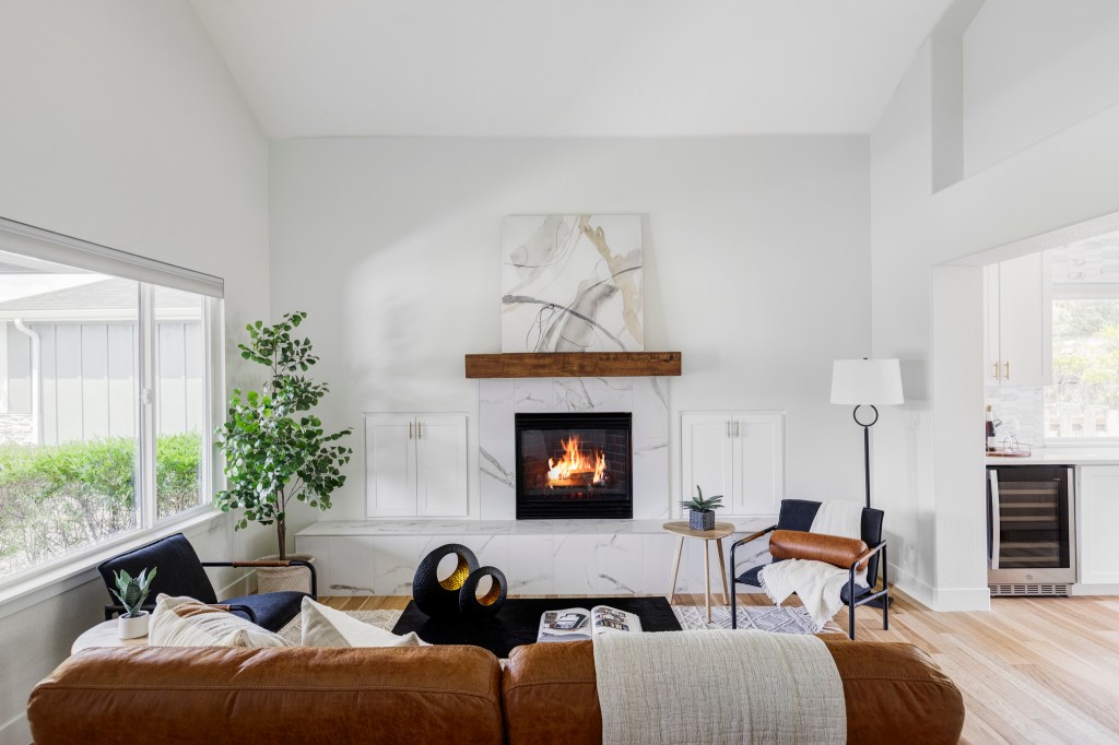 Hickory hardwood floors span the main level, which offers two inviting living areas—each with its own fireplace.